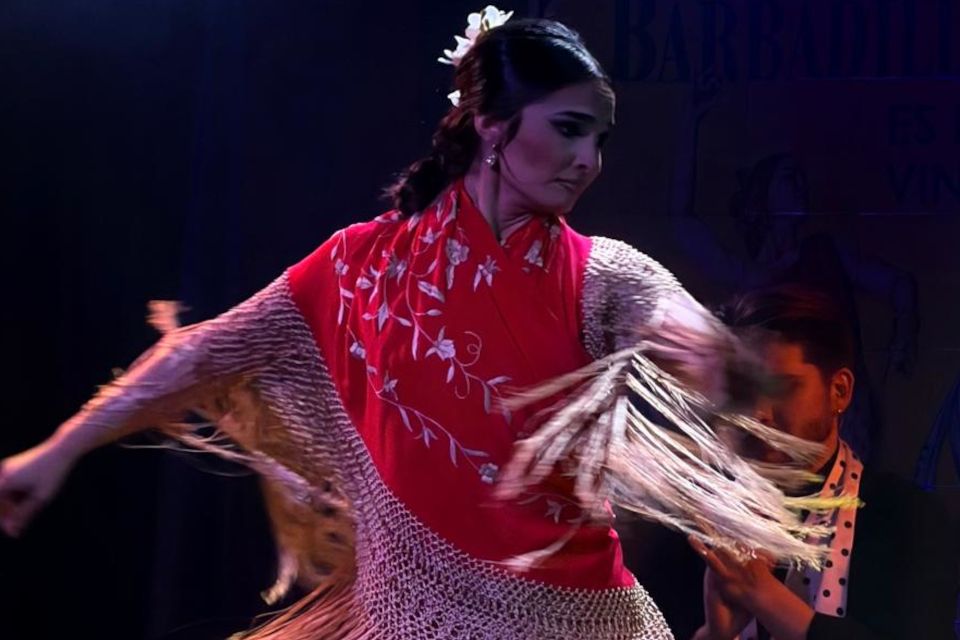 El espectáculo de flamenco en Tablao Flamenco Casa Inquieta se puede acompañar con un toque de jamón ibérico y el sabor sin par de manzanilla Solear o exquisito champán.