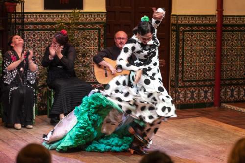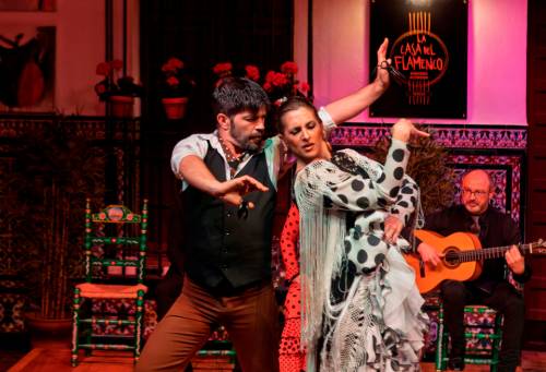 La Casa del Flamenco está ubicada en el corazón del Barrio de Santa Cruz, el antiguo barrio judío de Sevilla. En esta zona se encuentra los dos monumentos más importantes de Sevilla, la Catedral y el Alcázar. Dentro de este marco histórico La Casa del Flamenco ofrece espectáculos todas las noches en el patio principal de un antiguo palacio. Este negocio familiar ofrece precios razonables, incluyendo descuentos para estudiantes y niños.