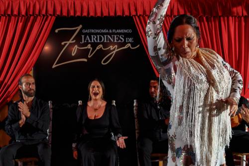 Los Jardines de Zoraya features nightly flamenco performances every day with a full service restaurant. The flamenco performances are held inside, where the restaurant and bar offer the comforts of a typical, rustic atmosphere typical of this part of Granada. The venue also has a spacious and very pleasant terrace with aromatic plants and a typical Nasrid fountain.
