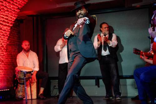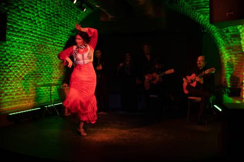 Tablao Flamenco La Carmela is located on Calle Victoria, a few steps from the central location of Puerta del Sol. Dedicated to flamenco song and dance, the performance space is located within the old coal cellars of Taberna La Carmela, a fabled restaurant which now combines traditional gastronomy with an authentic flamenco show under the direction of the flamenco artists Juan Andrés Maya and Raquel Martos.